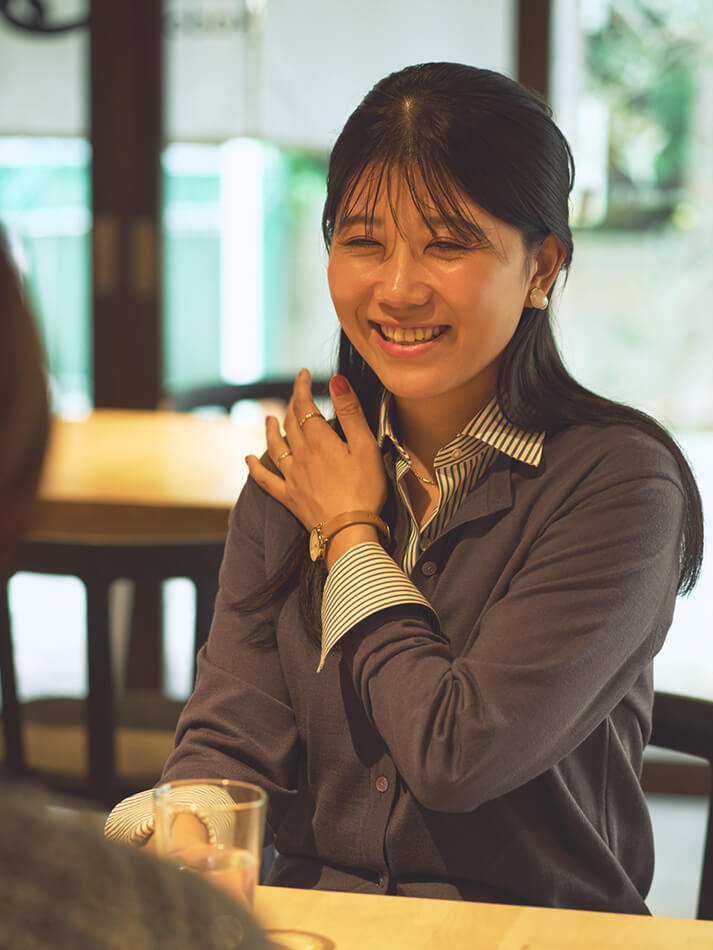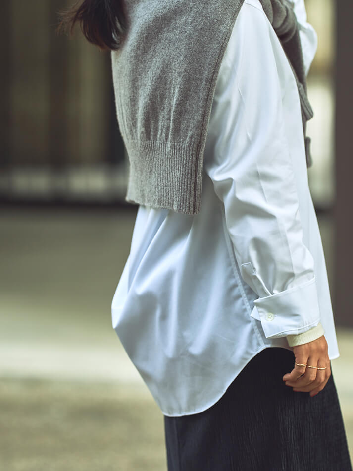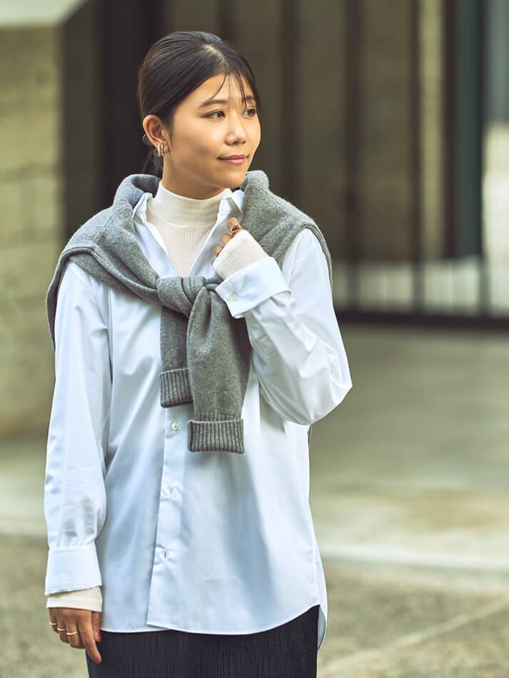 シャツ、カットソー、ニットなど、様々なアイテムを合わせやすく、