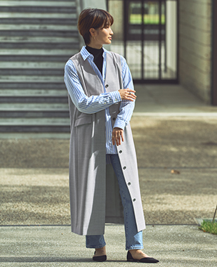 軽い着心地でありながら、ウールの上質さを感じられるジレワンピース。