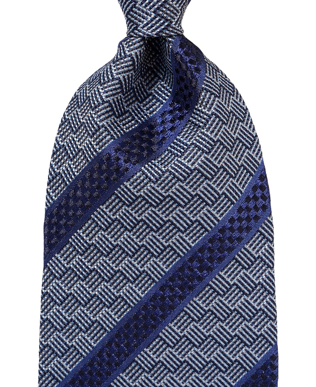■ネクタイのねじりが起こらないように生地の長さを充分にとって、バイアス取り (斜め取り)しています。