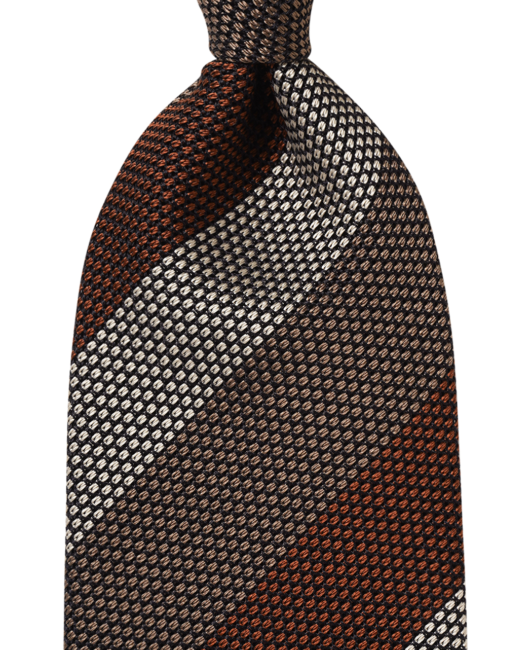 ■ネクタイのねじりが起こらないように生地の長さを充分にとって、バイアス取り(斜め取り)しています。