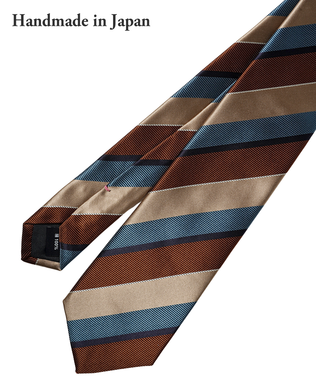■ネクタイのねじりが起こらないように生地の長さを充分にとって、バイアス取り(斜め取り)しています。