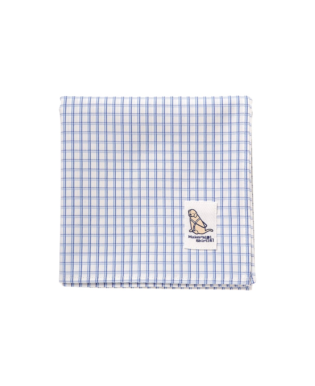 シャツ生地で作ったハンカチーフ。盲導犬支援のオリジナルロゴで作りました。