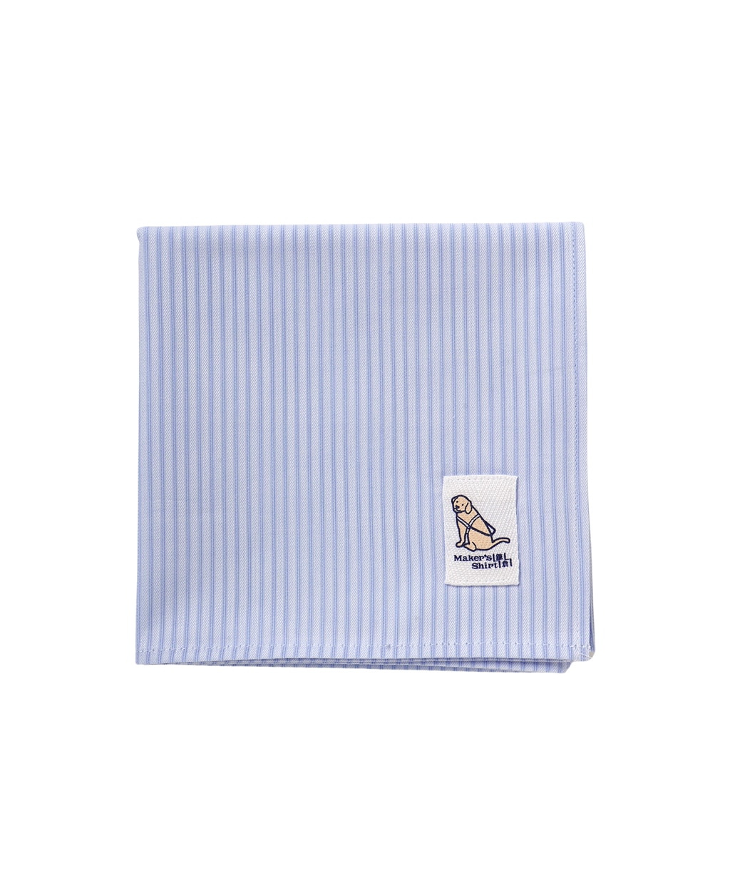 シャツ生地で作ったハンカチーフ。盲導犬支援のオリジナルロゴで作りました。