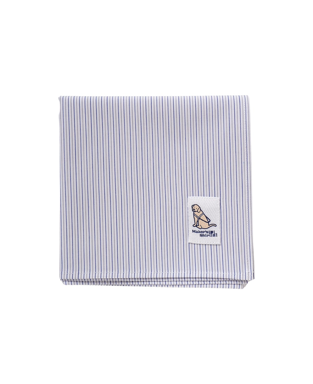 シャツ生地で作ったハンカチーフ。盲導犬支援のオリジナルロゴで作りました。