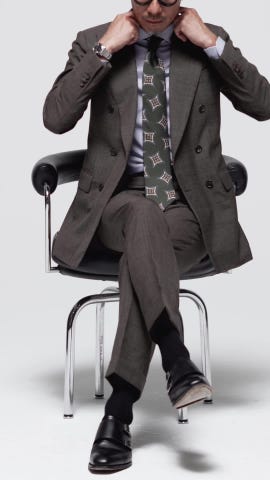普段は39-83がジャストサイズ。スーツスタイルにはちょうどいい、きれいめなフィット感です。でも、太めのパンツと合わせるときはクラシックフィット 40-82を選ぶこともあります。