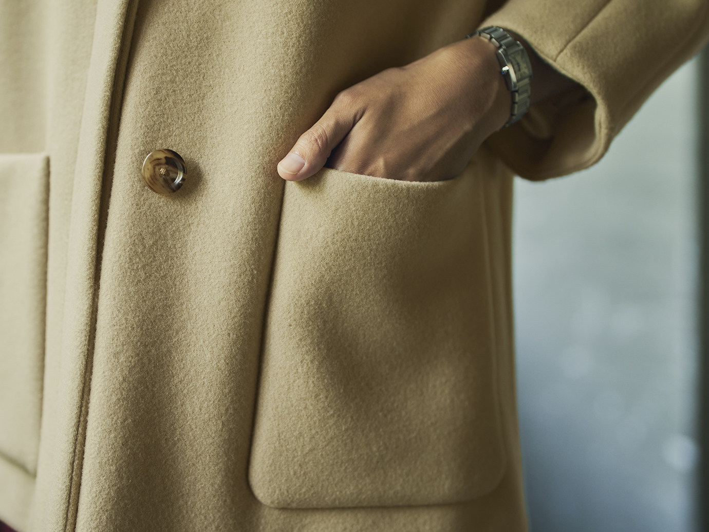 どんなスタイルにも映えるフラット釦