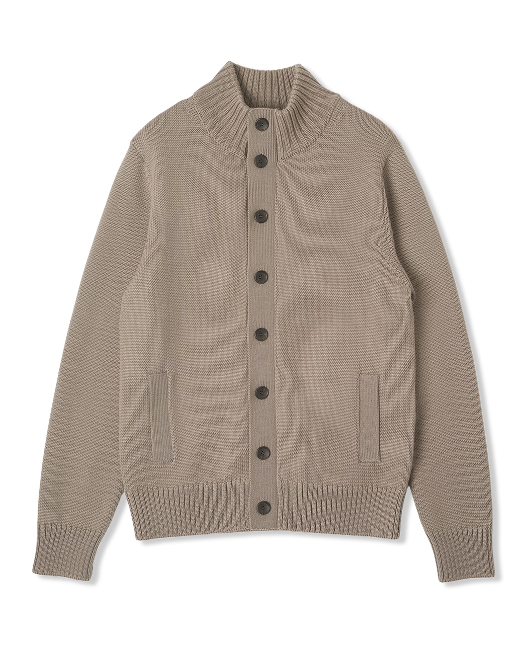 エクストラファインメリノウールを使用した高品質なニット糸で編み上げた、スタンドカラーカーディガン。