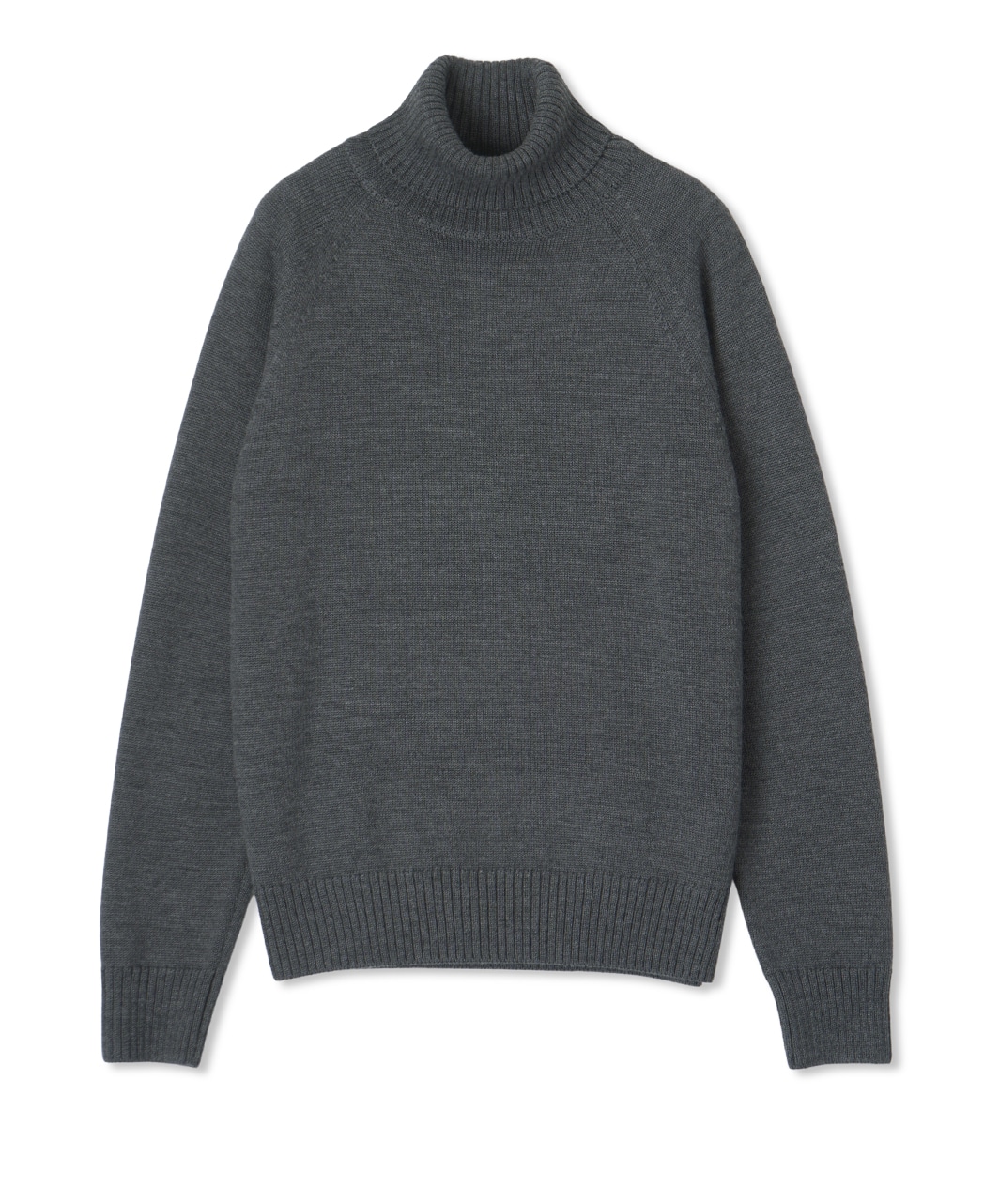 しなやかな7ゲージの編み地が生む程よい肉感と軽やかな着心地のタートルネックセーター。