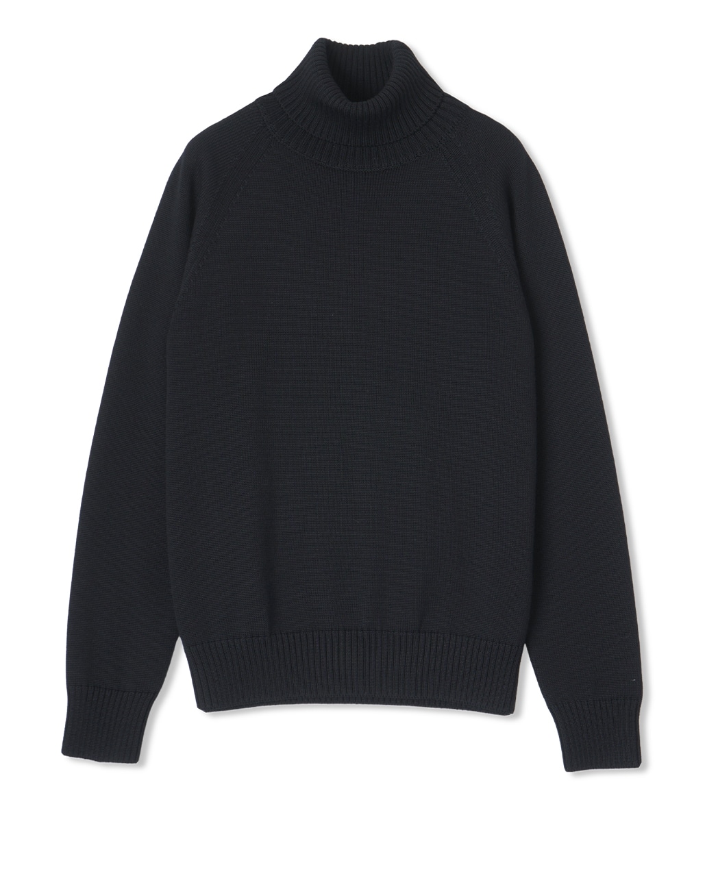 しなやかな7ゲージの編み地が生む程よい肉感と軽やかな着心地のタートルネックセーター。