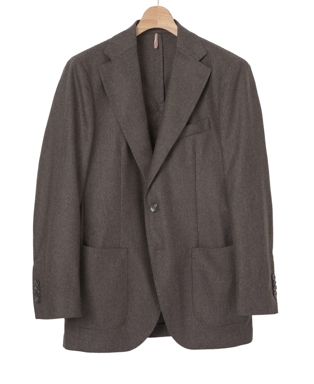 芯地を極力省いた軽量な仕立てで、肩やラペルは伝統的なナポリ仕様の柔らかなフォルムに仕上げました。動きやすくリラックス感のある着心地ながら、品のある佇まいでビジネスからカジュアルまで幅広く活躍します。