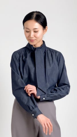 秋冬の旬な着こなしにおすすめ、ボウタイブラウス。