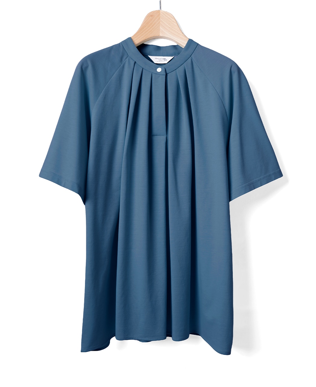 ・前後の襟もとのタックデザインが身頃にドレープを生み、華やかな印象を演出。