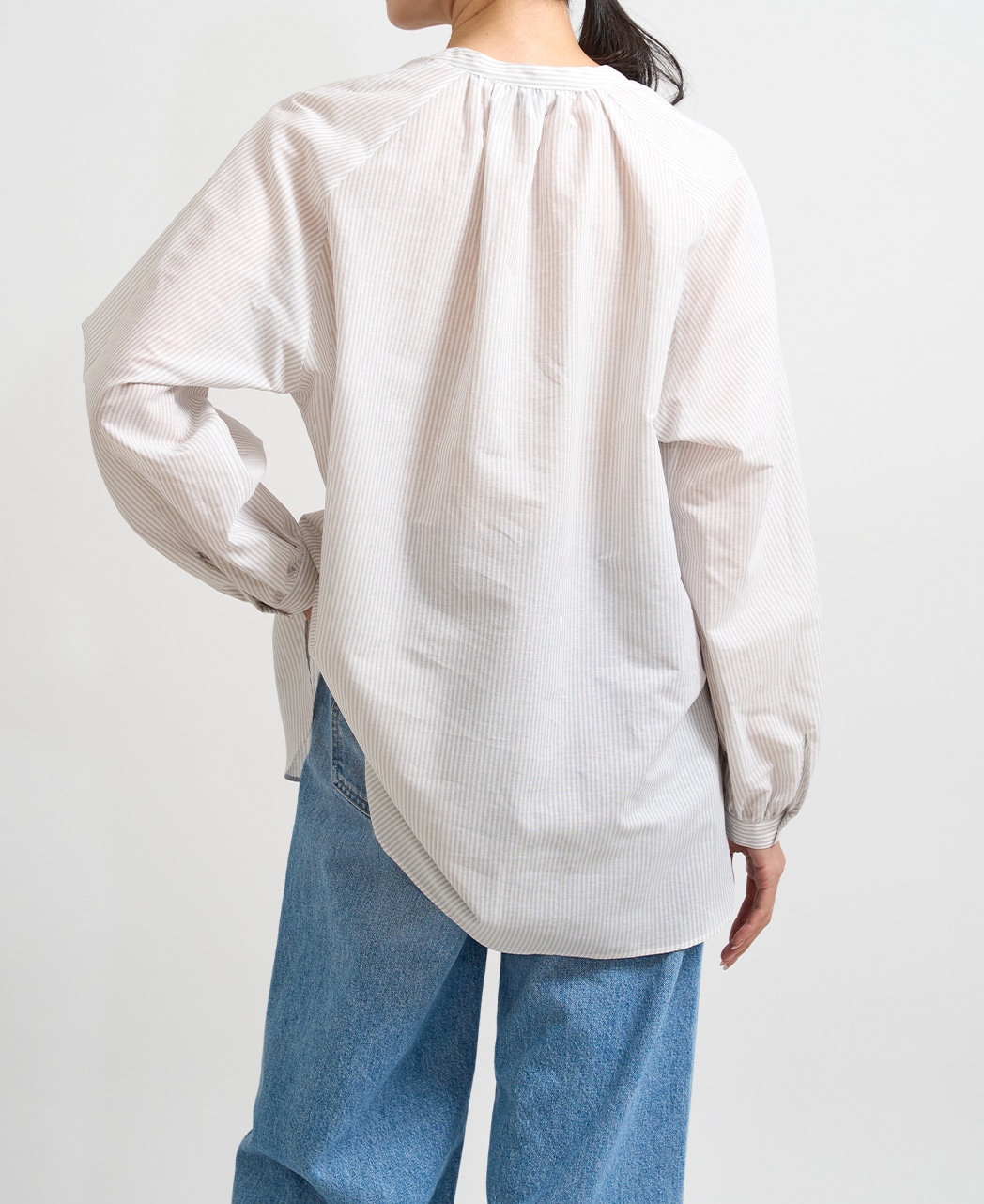 ・肌馴染みのよいグレーストライプ。白やニュアンスカラーと