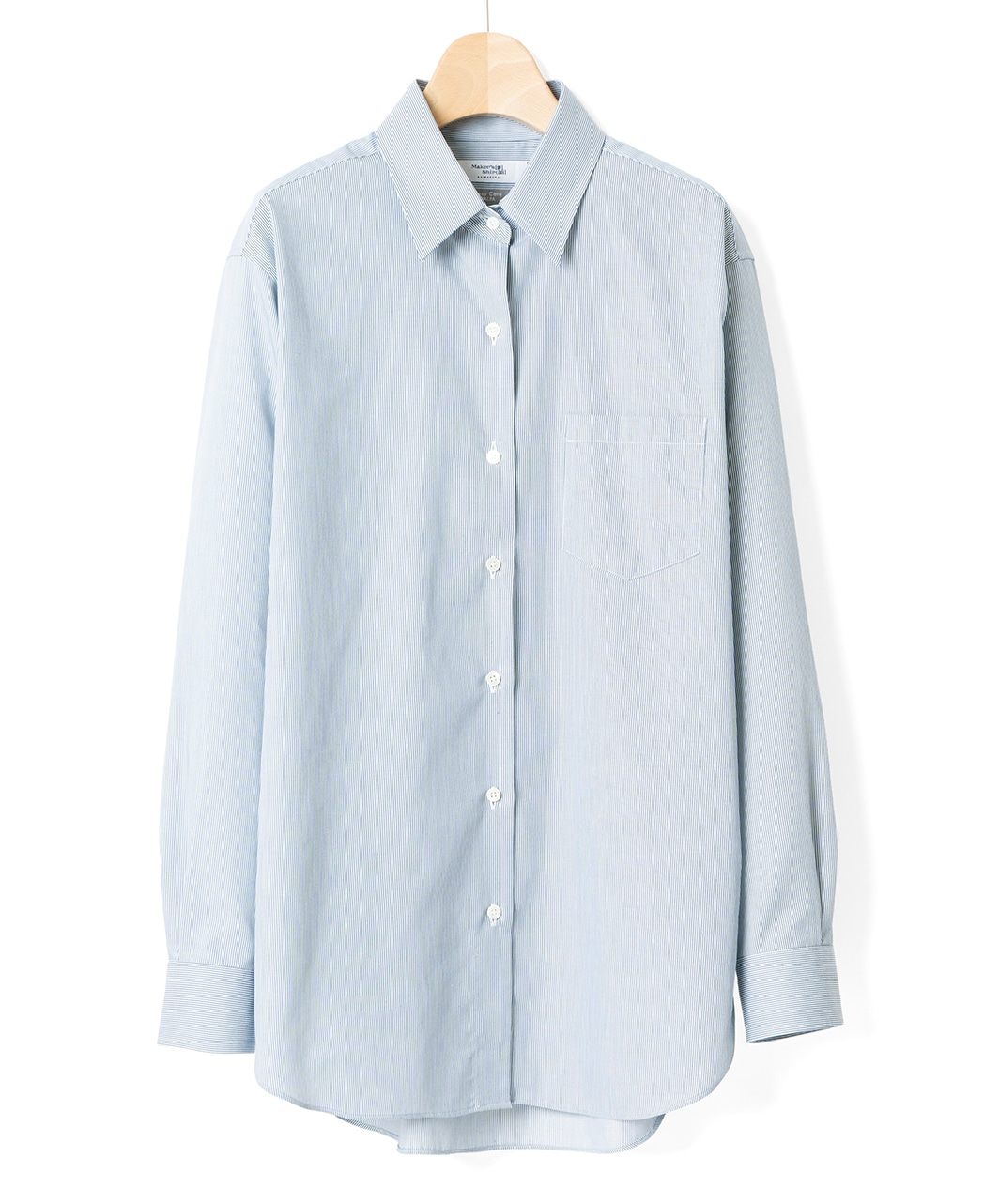 幅広いコーディネートに合わせやすい、ストライプシャツ。