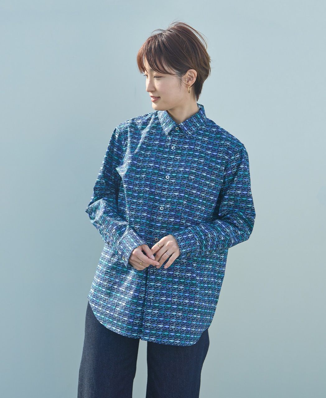 ディテールから感じるフェミニンさが調和するユニセックスシャツ。