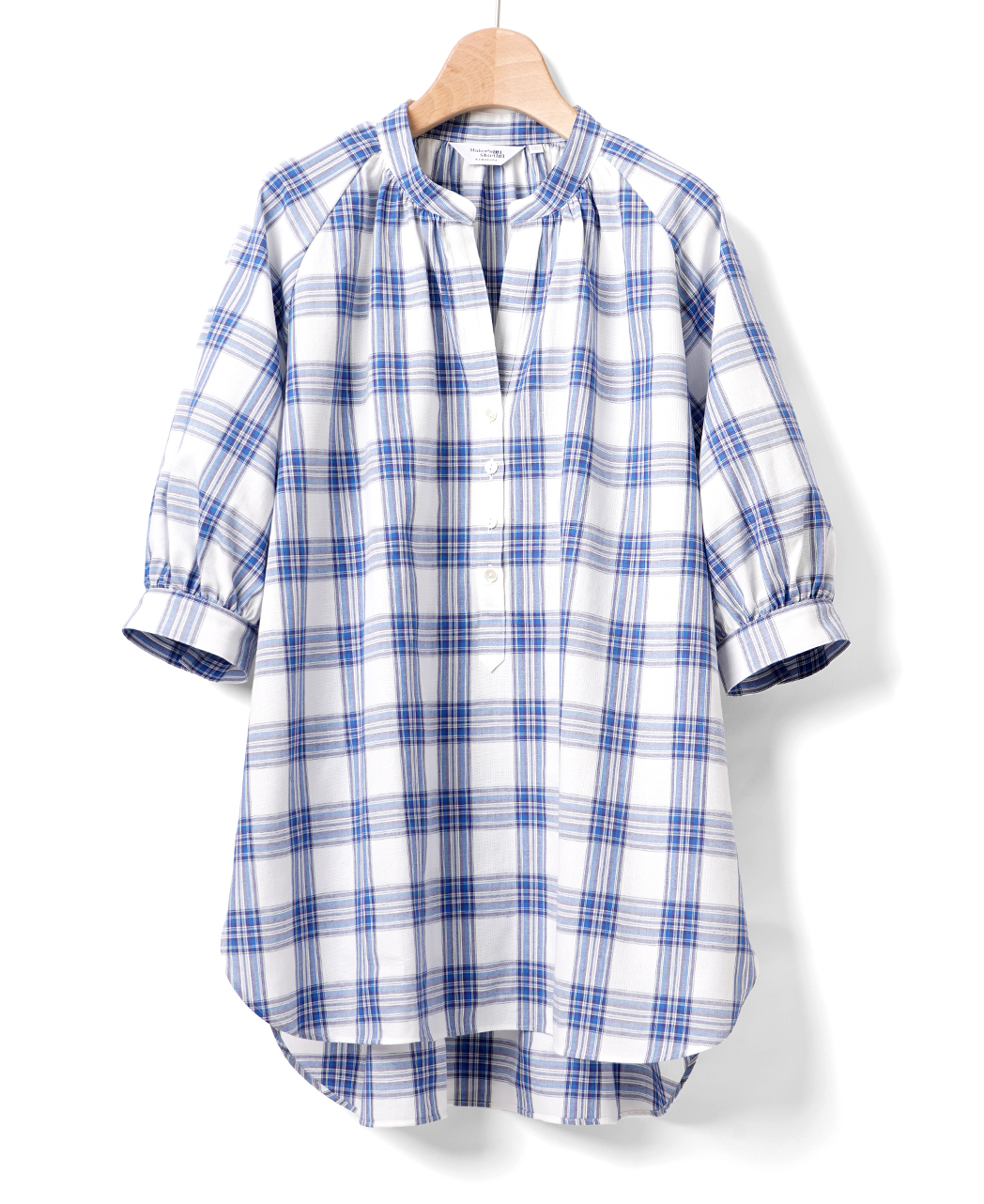 ・長めに設計した半袖丈、着丈。縦長のラインでスタイルを美しく見せます。