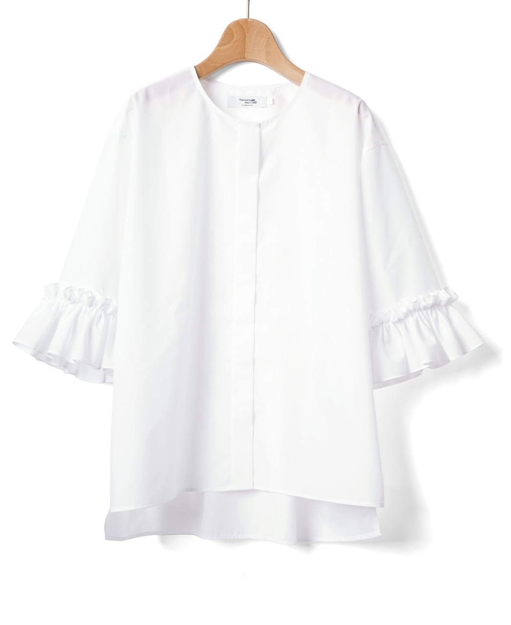 袖のフリルが華やかさを演出してくれる、半袖シャツ。