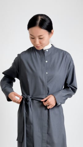 スーパー100’sウールを使用した、なめらかな風合いのシャツワンピース。