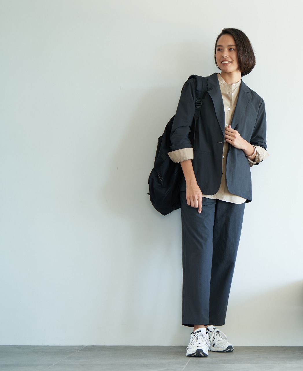 同素材のパンツとセットアップでのコーディネートが可能です。