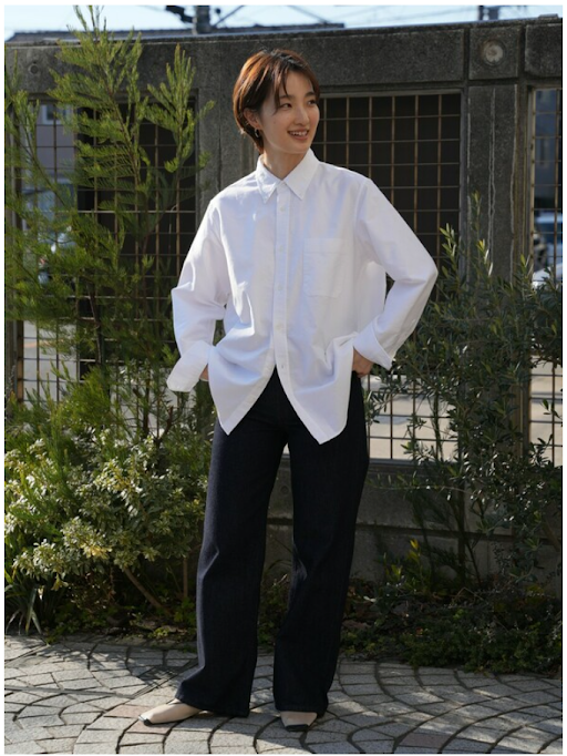 ・クリーンな印象のカジュアルスタイルに仕上がる濃紺デニム。