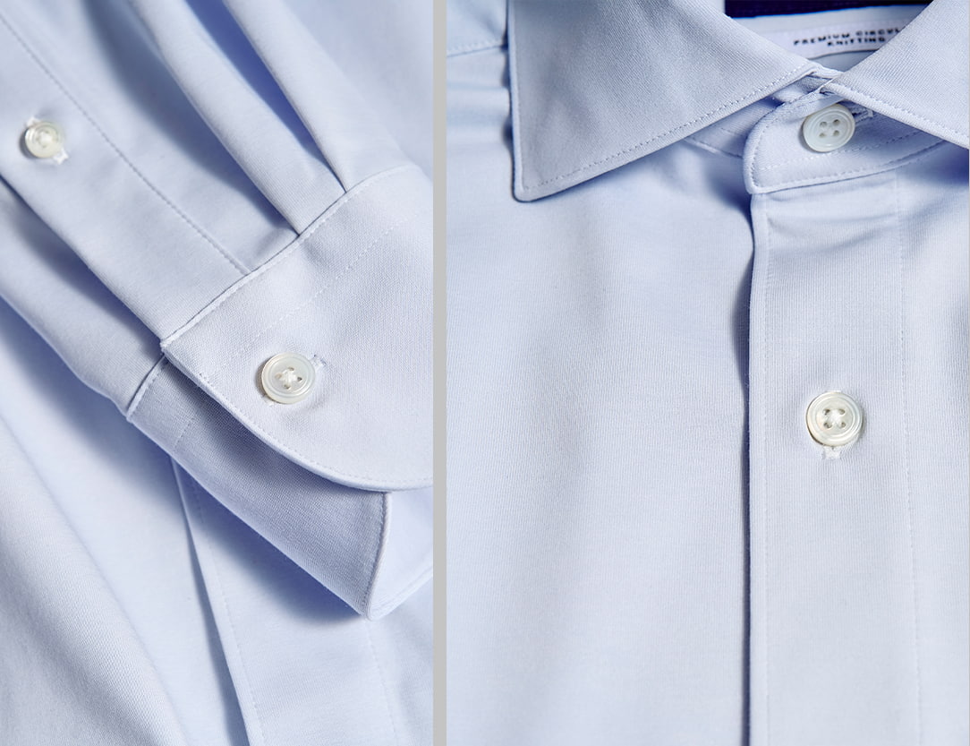 コバ 実際に店頭で見ても、一瞬布帛シャツと見間違えるほどの完成度ですよね! 海外でいろいろなシャツを見てきましたが、ストレッチシャツ分野での完成度は間違いなくナンバーワンだと思います。