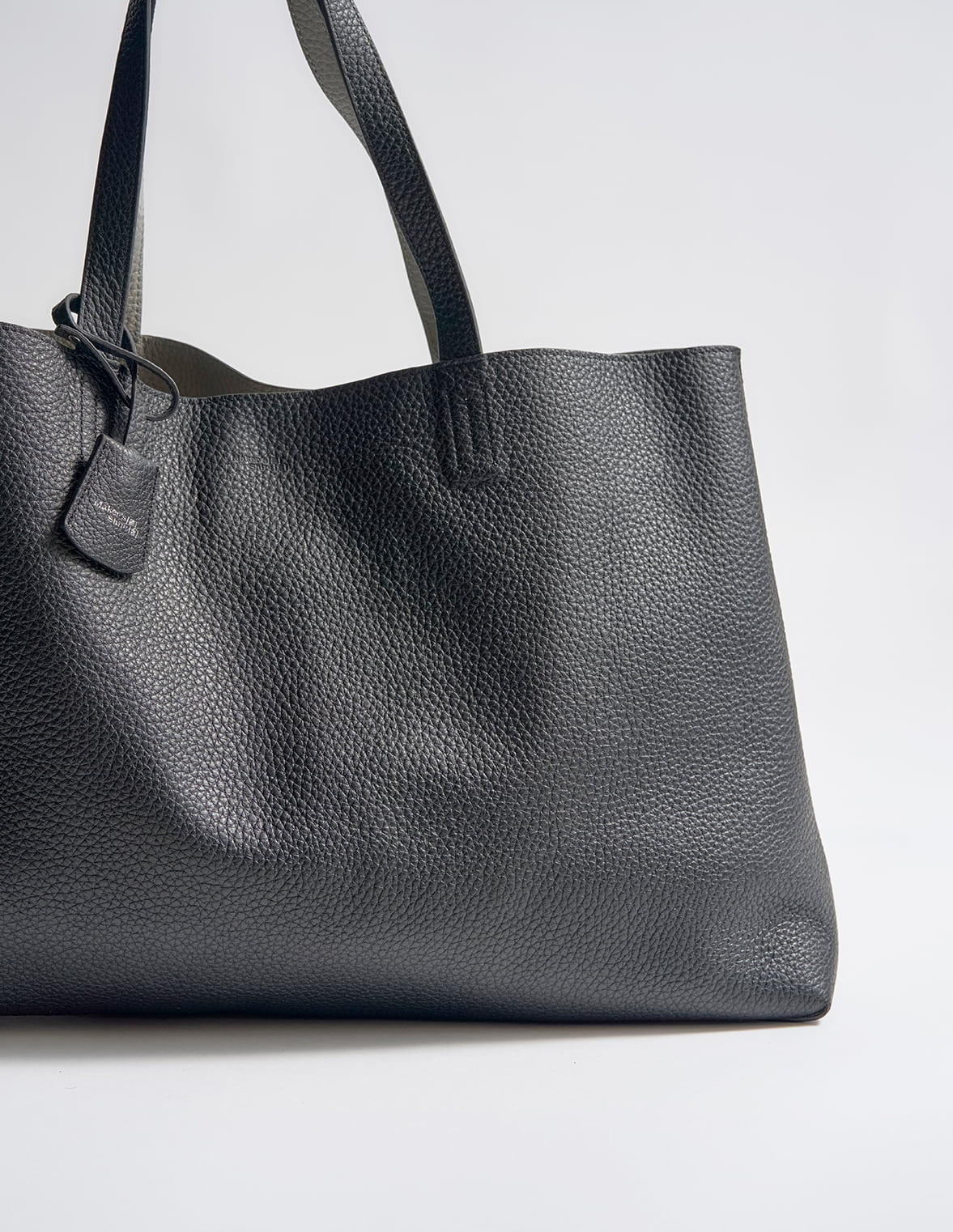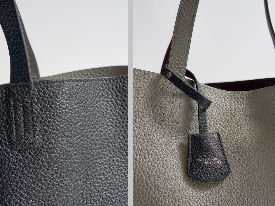 コバ 色はバイカラーで品よく。一番苦労したのは、リバーシブルを掲げる以上、表も裏も高水準の縫製に仕上げること。実際には裏返すことは多くないのですが、服装と同じで気分でバッグの色味も変えてほしいです!
