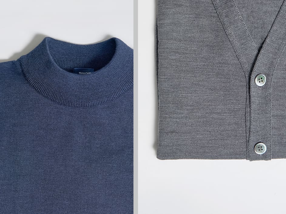 宮澤 素材に目が行きがちですが、縫製や襟の構築具合もすごくないですか? ニットって生地が動くのでとにかく縫いにくいんですが、ここまで綺麗に仕上げられるのは、さすが MADE IN JAPAN だなと。