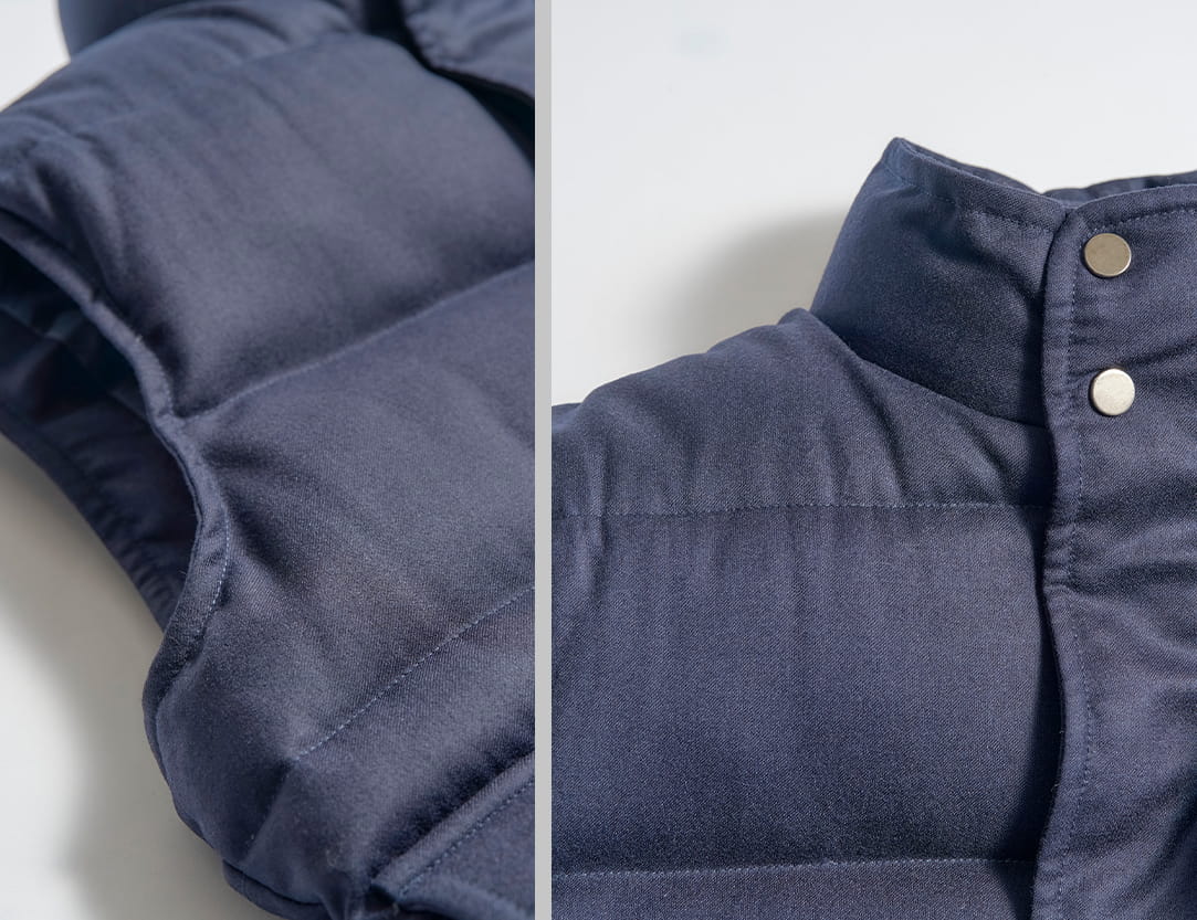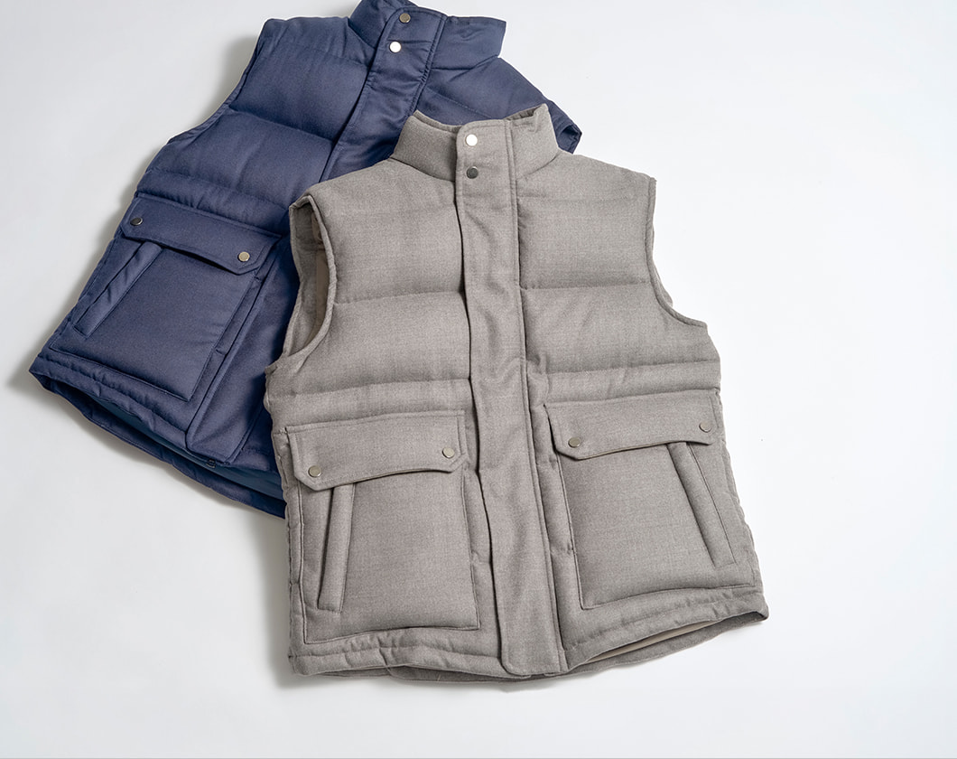 コバ ウールを張ったビジネス対応のダウンベストで、フィルパワーも760あります。極論、これ1着で冬を越せるかも!? 数量がかなり減ってきていますので、お早めに!