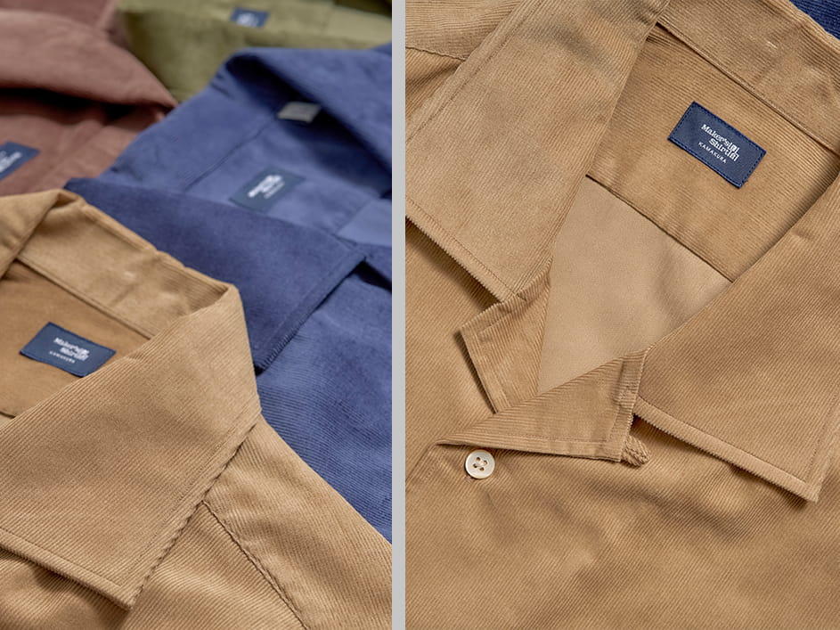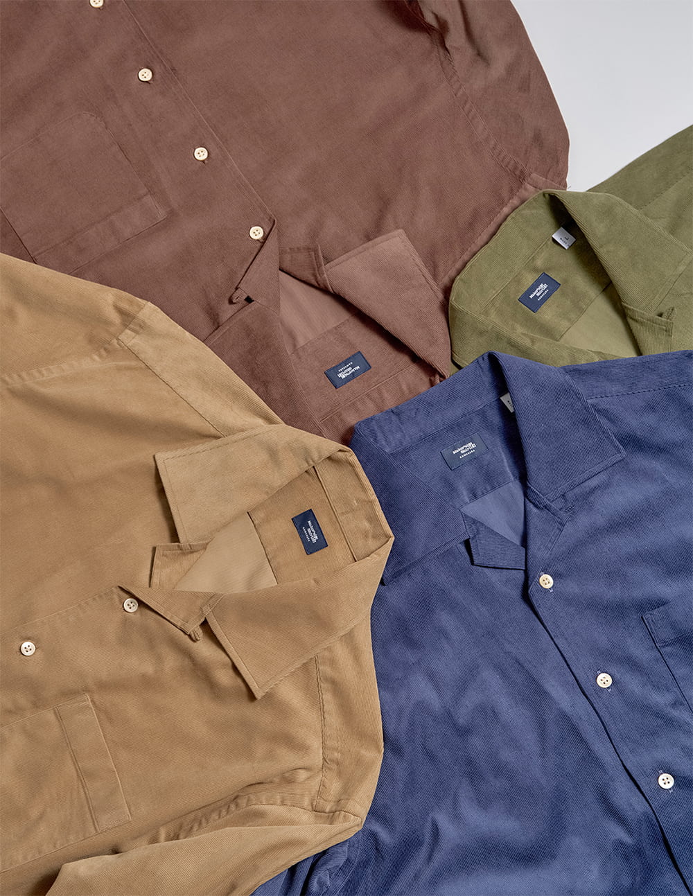 コバ 第18位はコーデュロイのキャンプカラーシャツです。秋や春といった「シャツ1枚」の季節に、アウター使いできるカジュアルシャツとして販売している新型です。