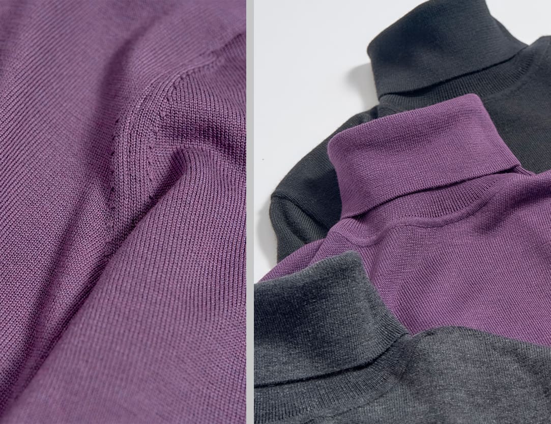 コバ そうです。スタイルとしては紡毛のジャケットのインナーやコートの下に着る想定にしているので、あまりにハイゲージにしてしまうとコーディネート的に合わないと思っています。今回は30ゲージでモックネックセーターも作っていますので、後ほど紹介します。