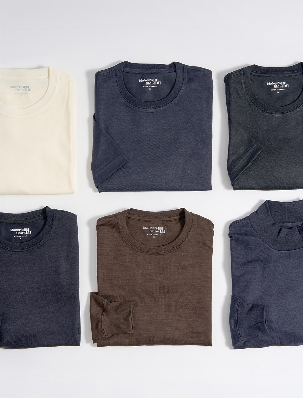 コバ 僕はすでに10枚所持していますが、バリエーションもかなり広がってきています。長袖はもちろん、モックネックも登場します。そしてまだ言えませんが、皆さまも驚くと同時に、ウール愛好家でしたら必ず欲しくなるアイテムも近日販売できると思いますので、こうご期待ください!