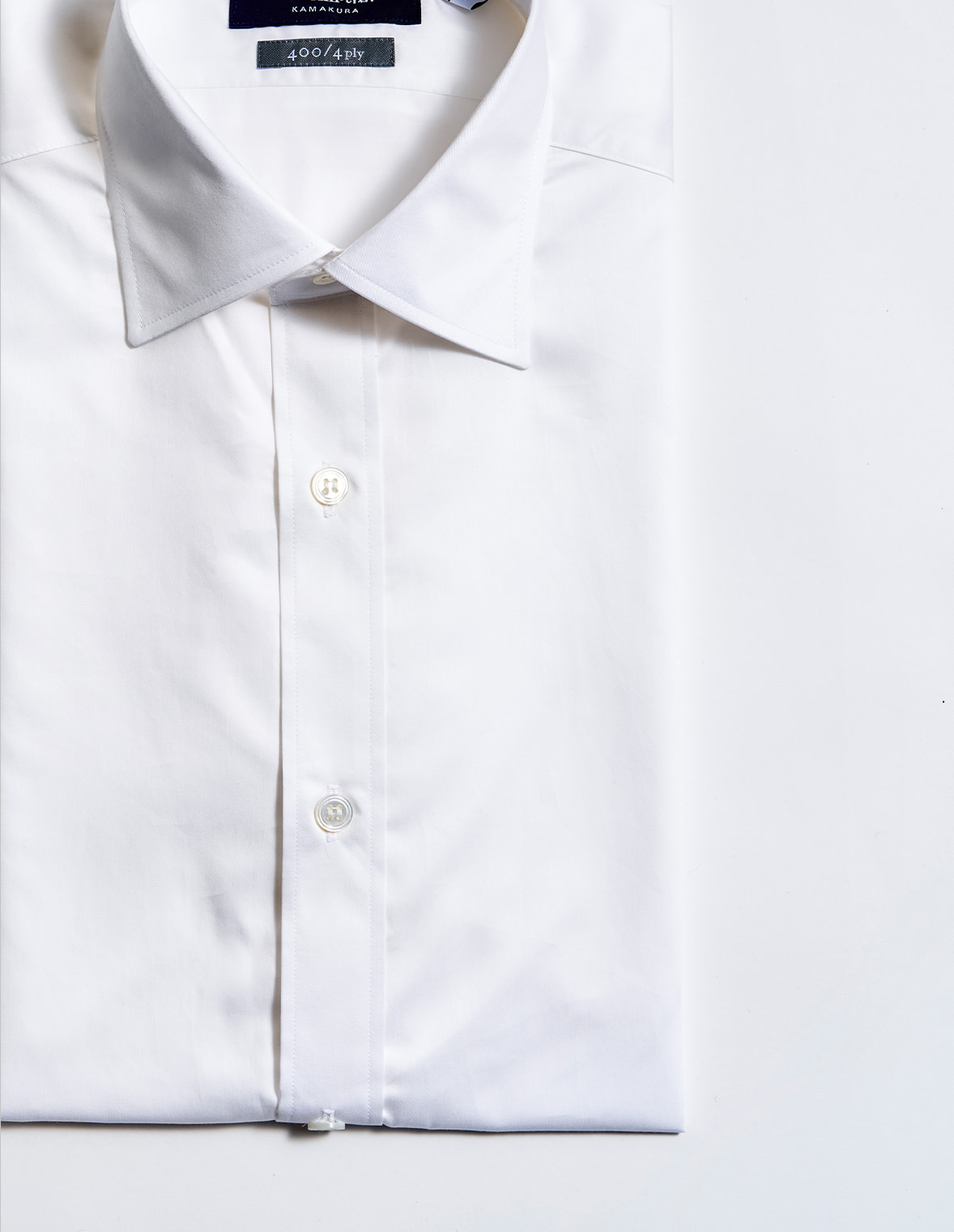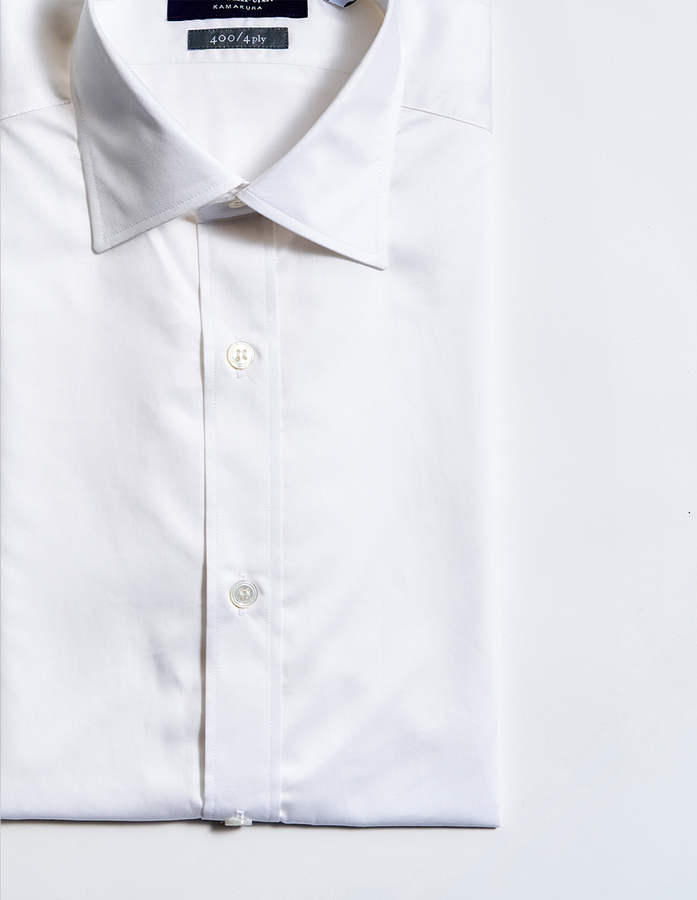 宮澤 イタリアでもイギリスでもない、中庸な雰囲気のフレンチに仕上げるのは非常に難しい。襟型は独自のセミスプレッドを採用し、やはり肝は生地! 鎌倉シャツでしか手に入れることのできない400番手を採用したことで、唯一無二感に繋がったと自負しています。細かく言うとまだまだありますが、それはまた別の機会で(笑)。