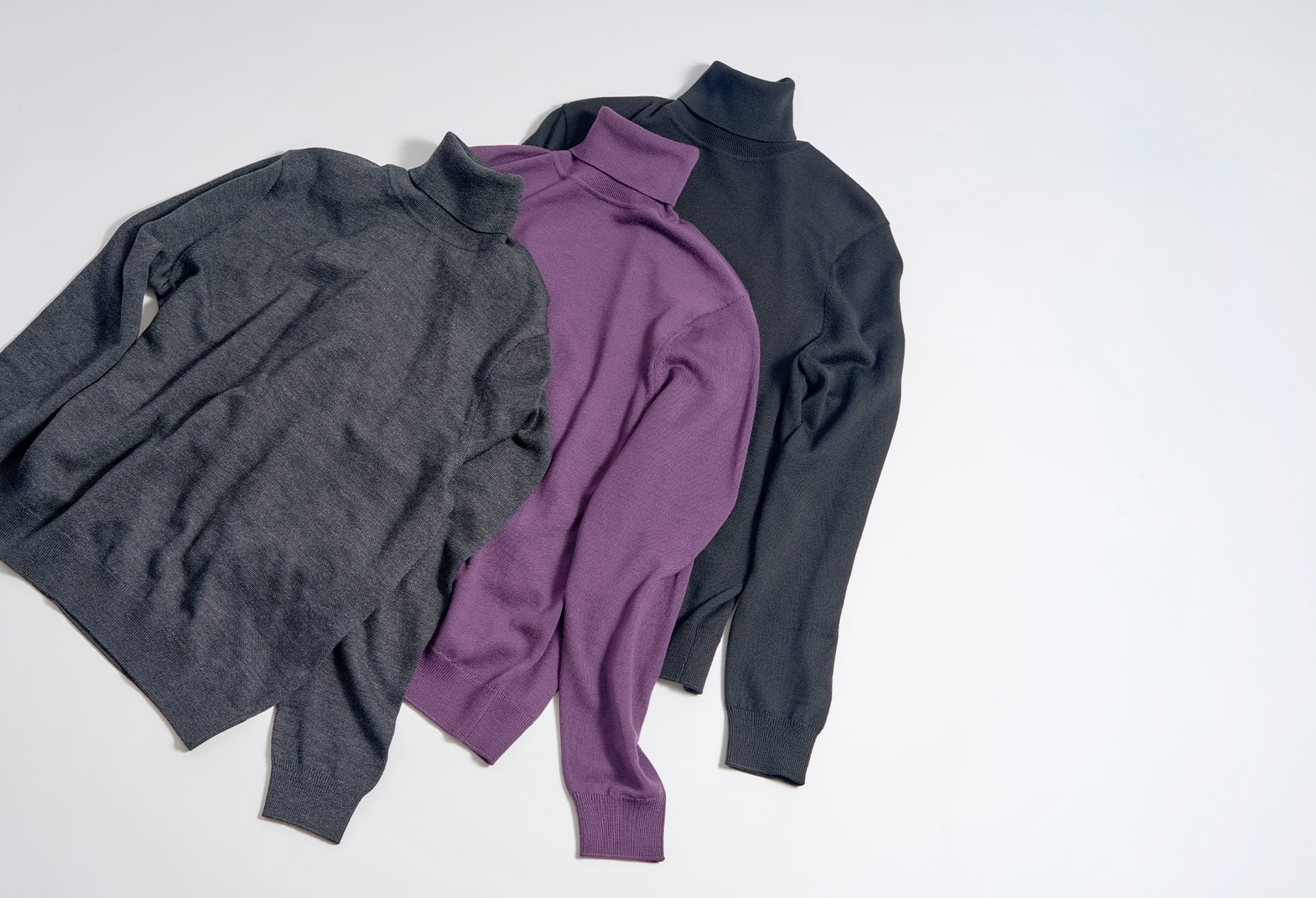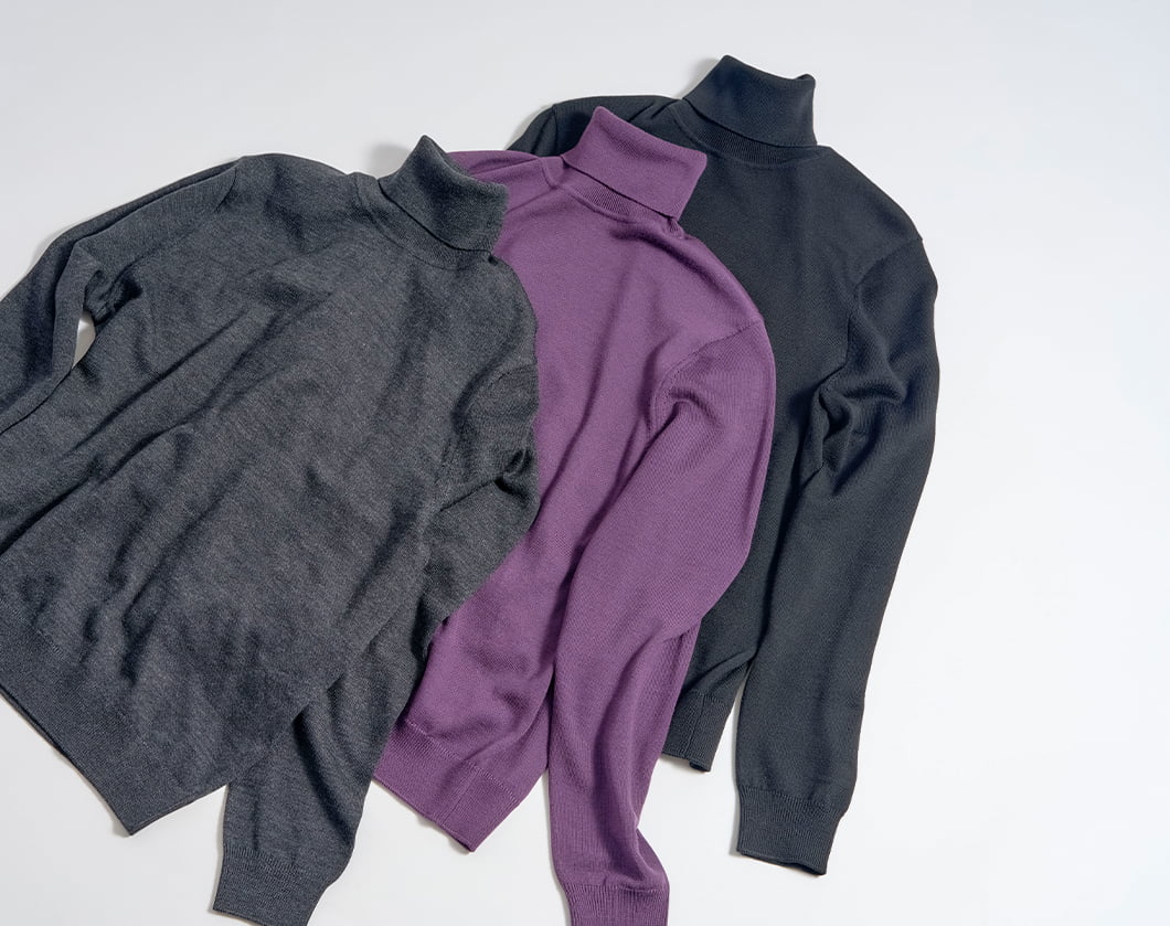 宮澤 社内きっての寒がりの私(暑がりのコバとの温度設定抗争が毎シーズン勃発する)ですが、このタートルネックはまさに救世主!あえて12ゲージにしているんだよね?