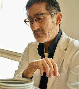 1977年生まれ。某セレクトショップ販売員を経て、ミラノのデザイン事務所に勤務後、現職。年1/4をヨーロッパで過ごしていたが、2020年、真の鎌倉シャツを作るため東京から距離を置き、鎌倉に移住した。2025年現在、再びヨーロッパへと意識を高めると同時に鎌倉・ローカルの大切さを感じている。