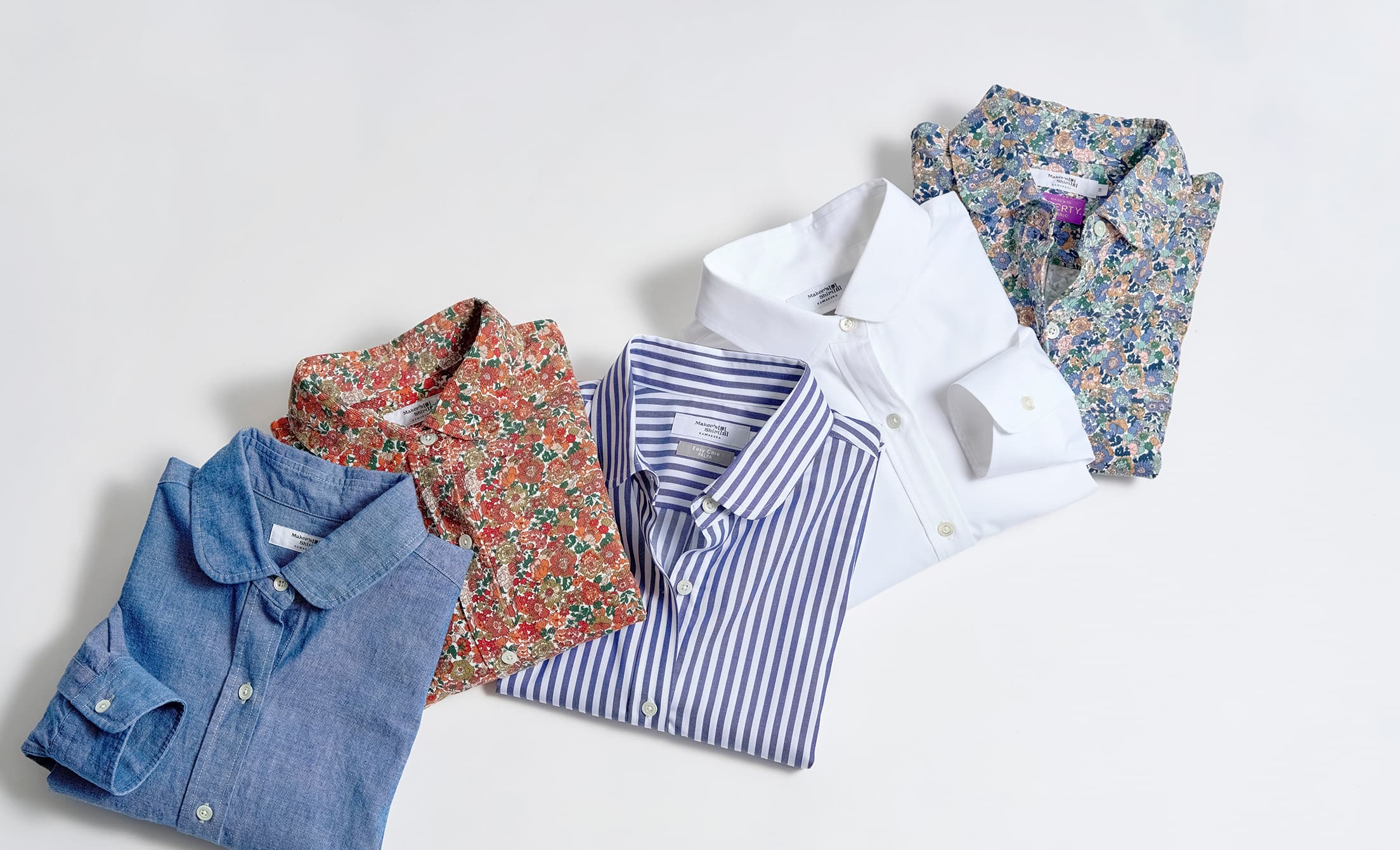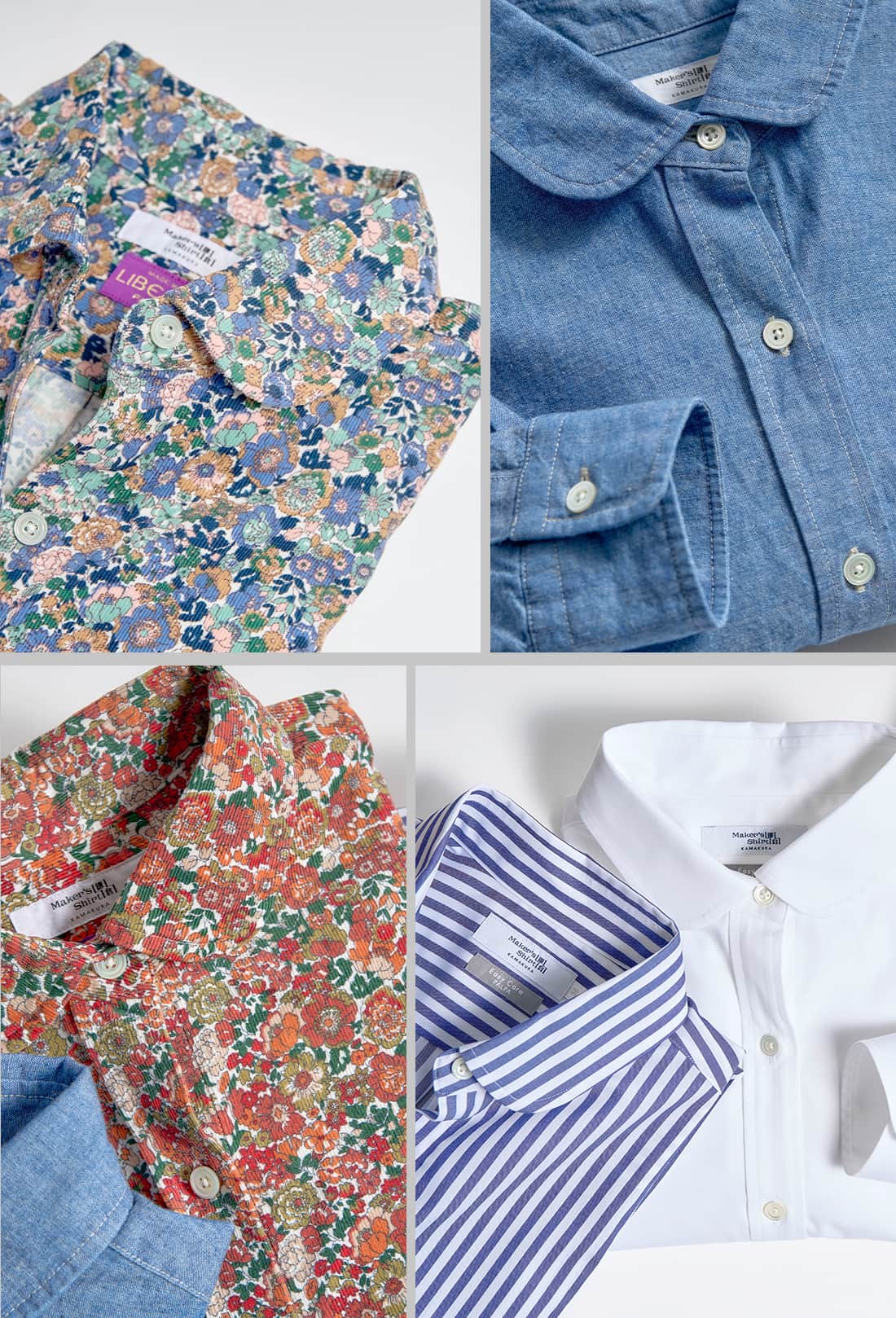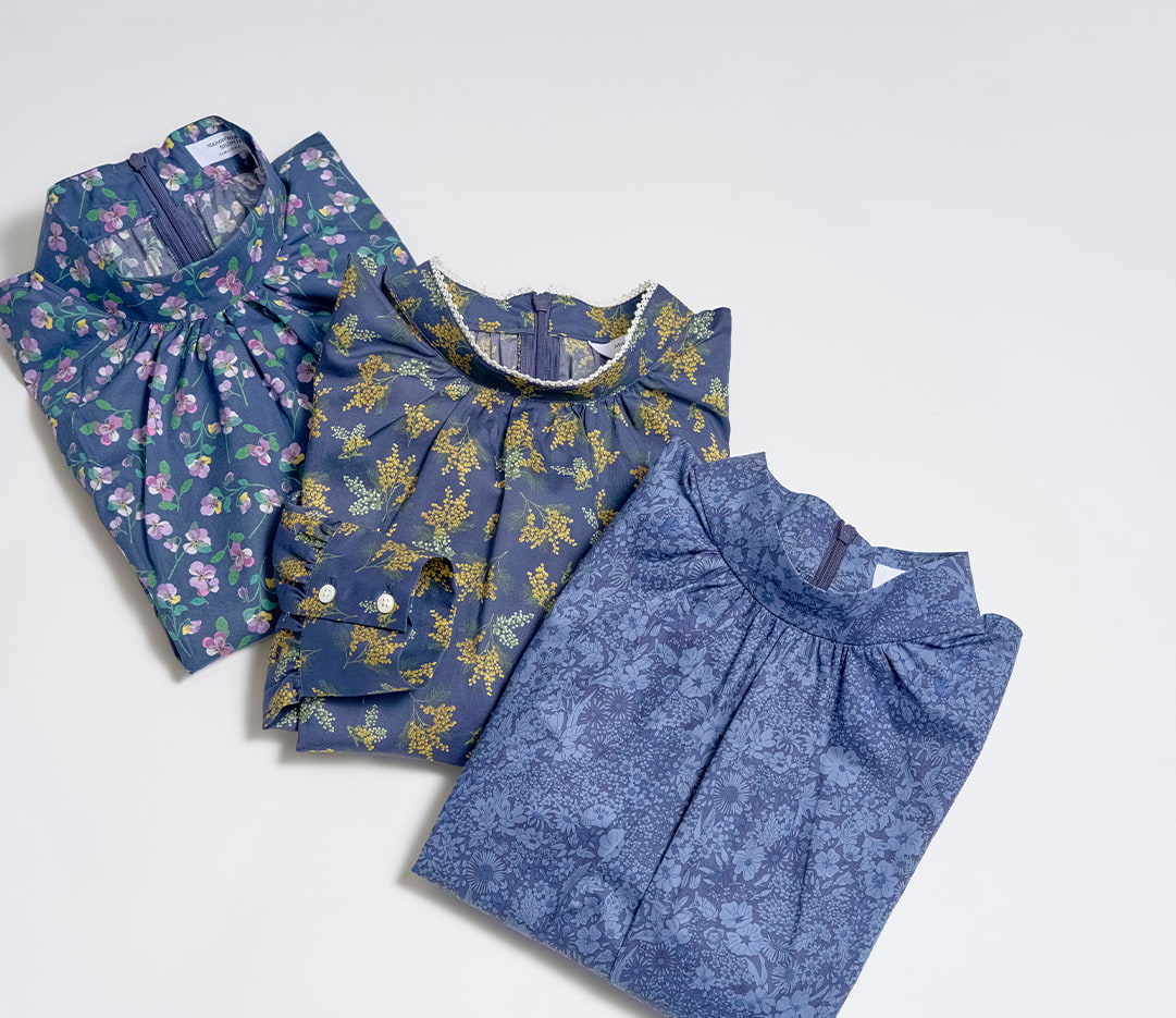 今年で創業150周年を迎える「LIBERTY FABRICS」。背景にある歴史と卓越したセンスで、多くのファンの心をつかむテキスタイルブランドです。鎌倉シャツもその魅力に惚れ込んで、LIBERTY FABRICS の生地を扱うようになり、もうすぐ10年を迎えます。メインカラーにしているブルーは様々なカラーやスタイリングとの相性がよく、また鎌倉シャツならではのネイビーロゴや、鎌倉の海を連想させるブルーとして、思い入れのある色です。そして、プリントのデザインごとに込められたストーリーに胸をときめかせながら、生地を選ぶのはいつも楽しく、このときめきをお客様にもお届けしたいという想いで、シャツやブラウスを作り続けてきました。これからも変わらずに魅力的な商品をお届けしていきます。