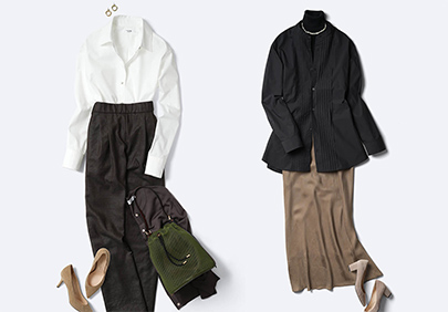 遊び心を感じる「ラウンドカラーシャツ」の着こなしを