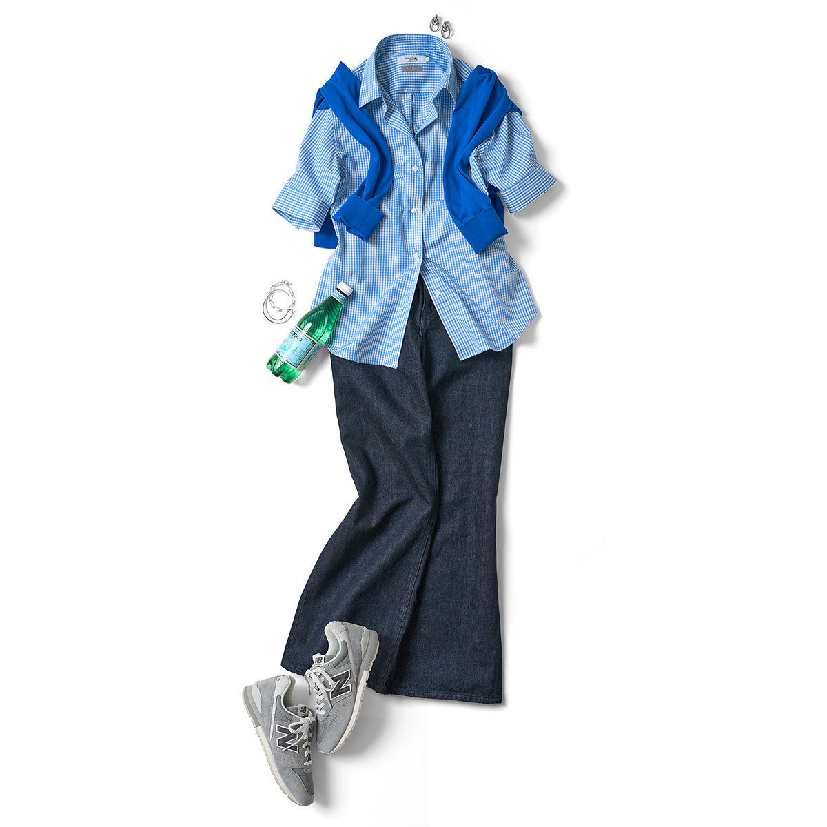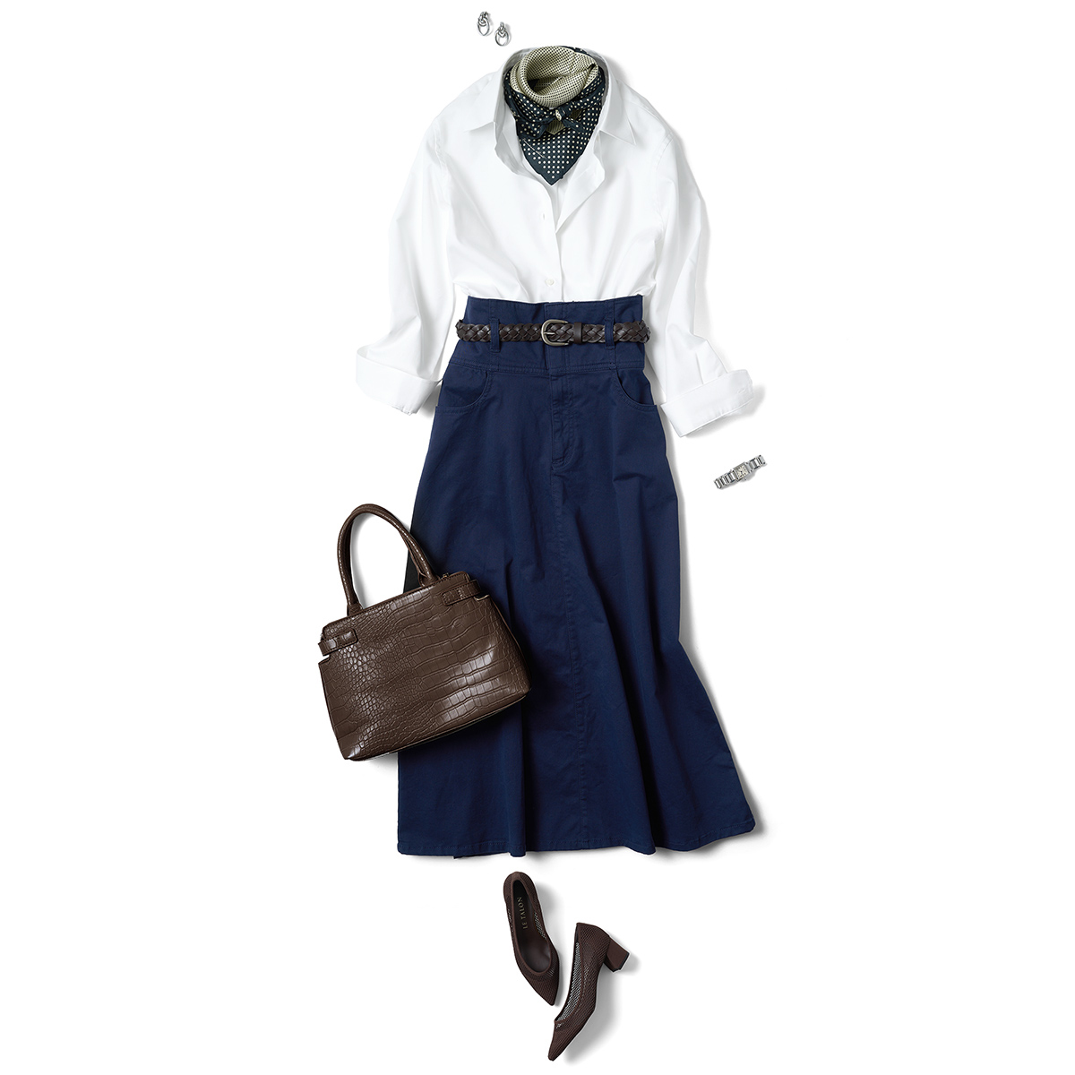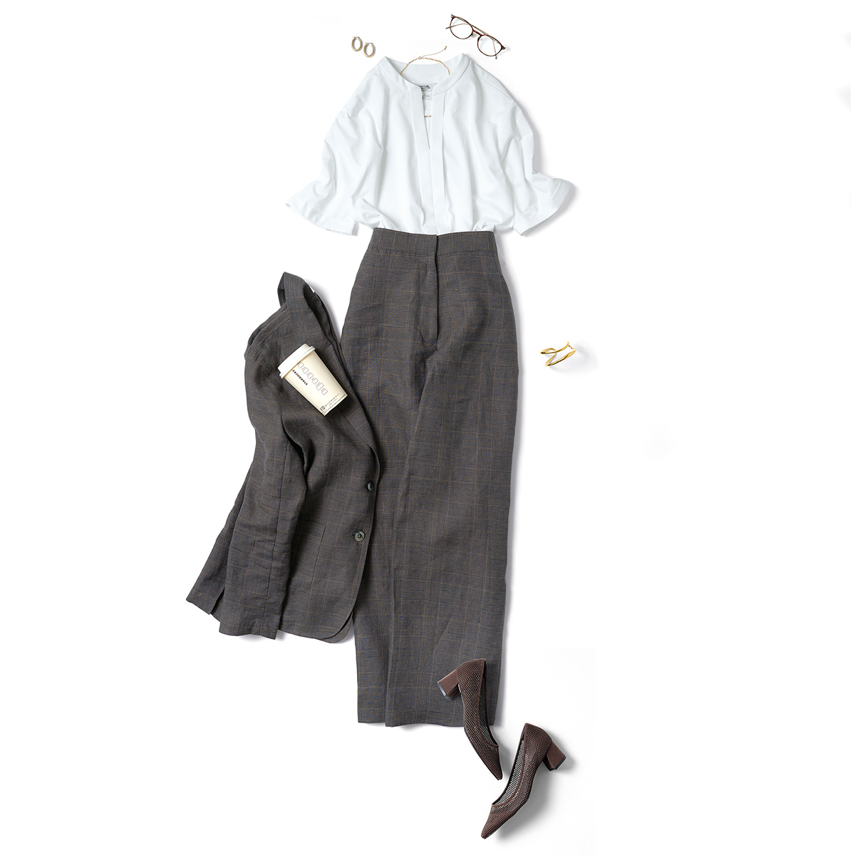 様々なアイテムとのコーディネートが可能な白シャツ。ブレスレット丈の袖なら、腕時計やブレスレットにかからず、すっきりとした印象の手もとに。季節感も演出します。