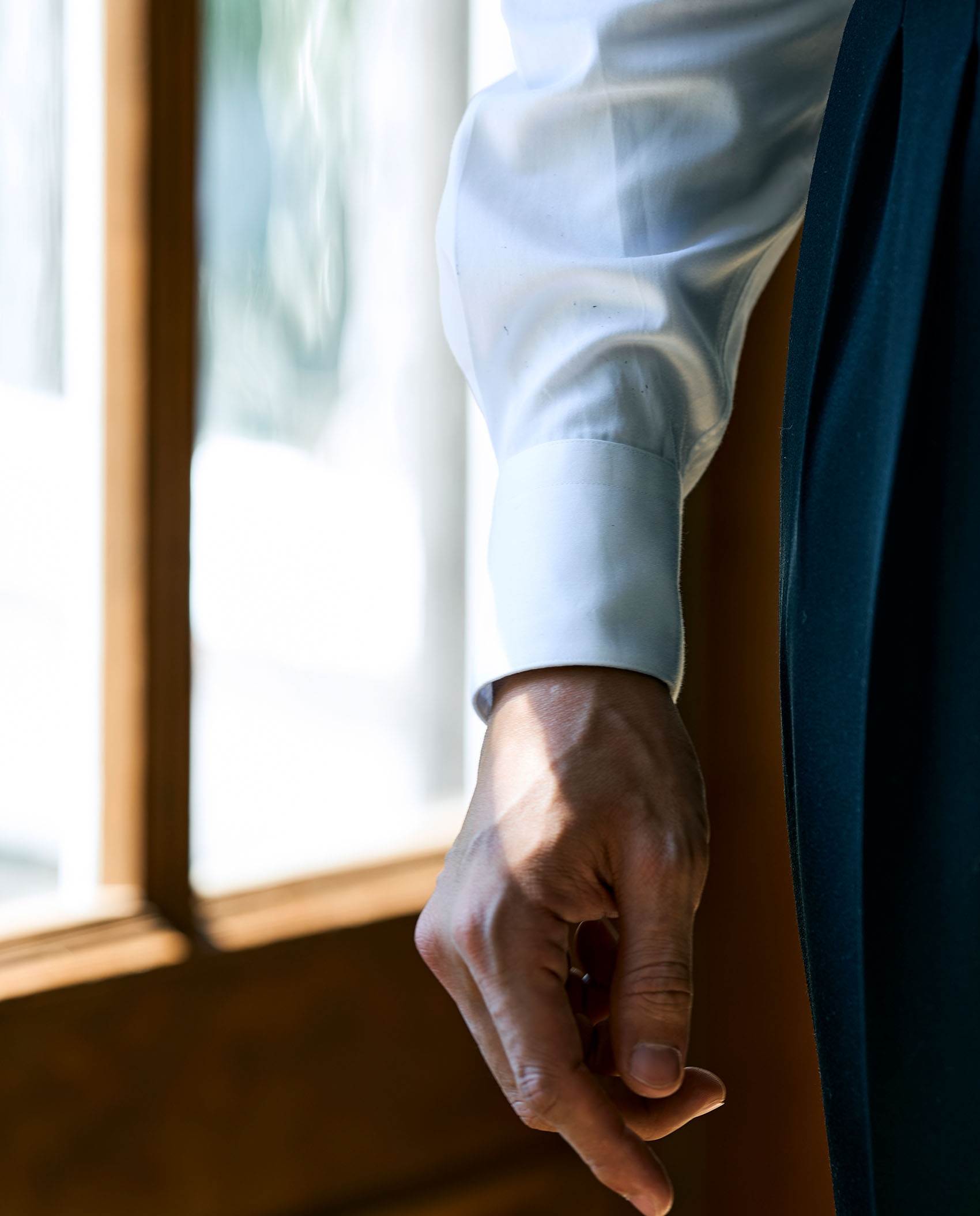 鎌倉シャツのオーダーシャツは、襟型やカフス、フロントスタイルといったディテールの一つひとつに、トラディショナルなフォーマルウェアの美学を追求。