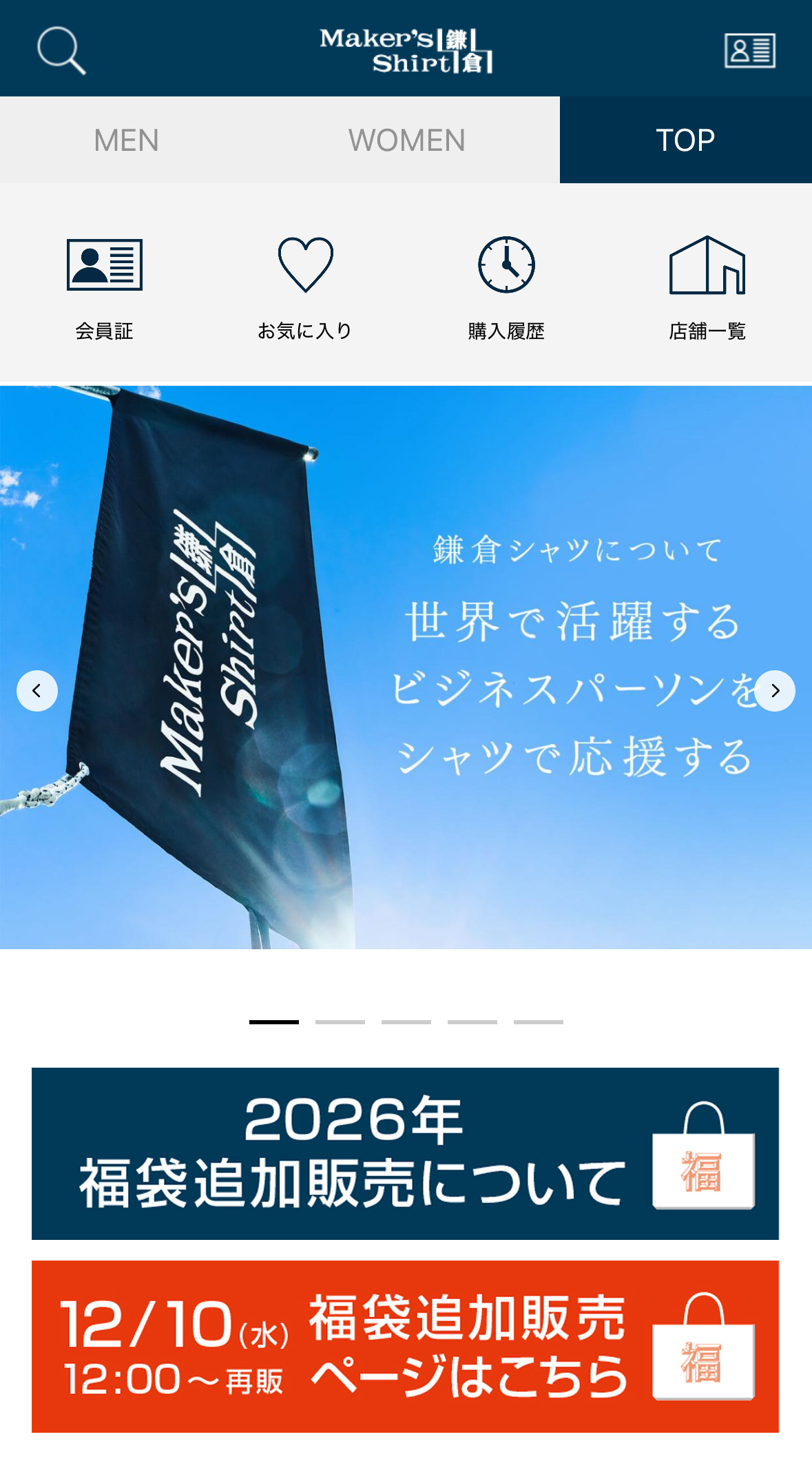 販売は、鎌倉シャツ公式アプリ先行で行います。 アプリにてログインしていただいた会員様にのみ、福袋先行予約ページへのアクセスが可能です。