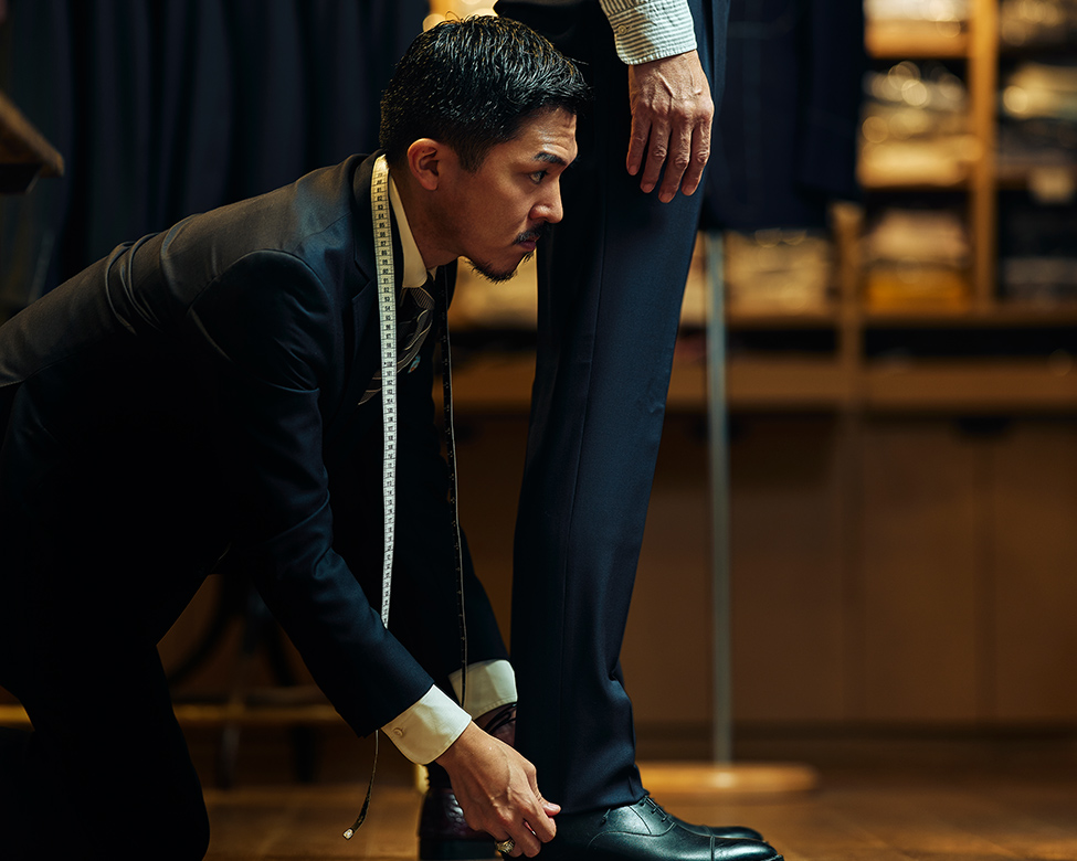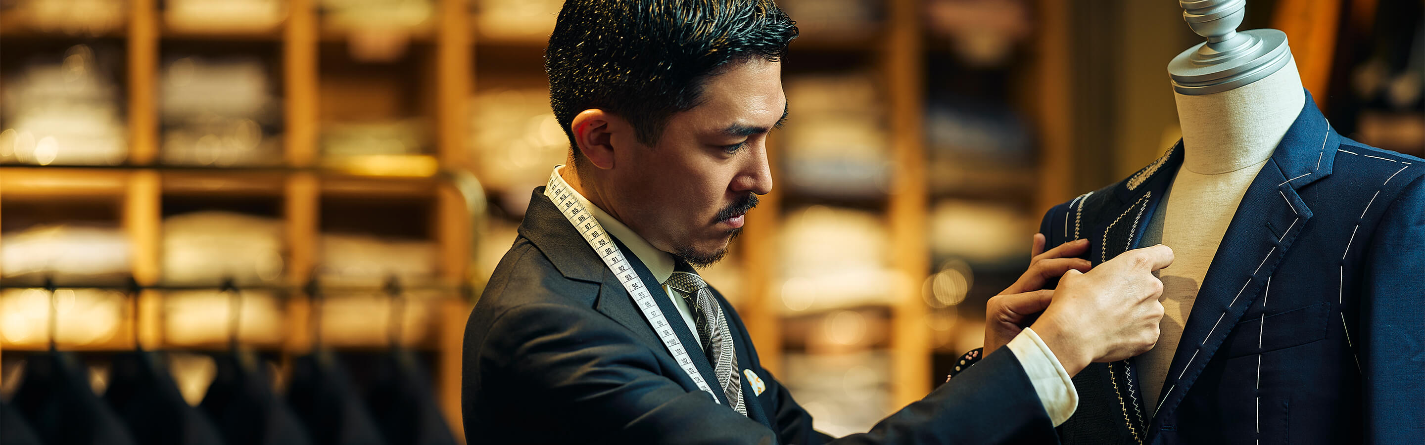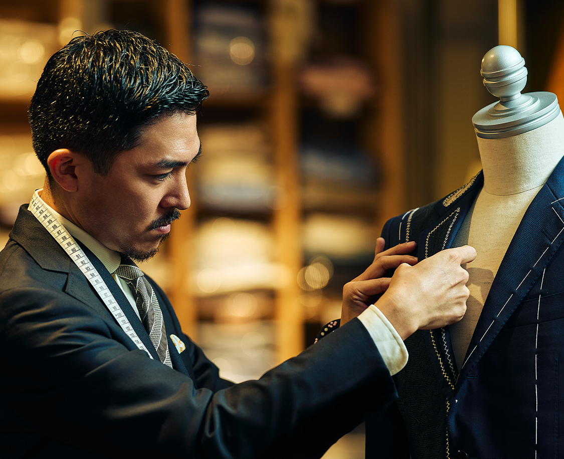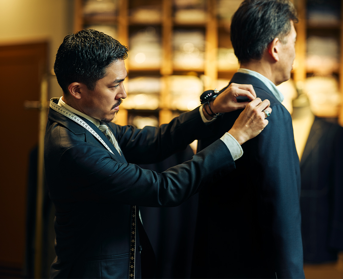高度な採寸技術や正統派スタイルを学んだオーダー専任スタッフ(フィッター)が、