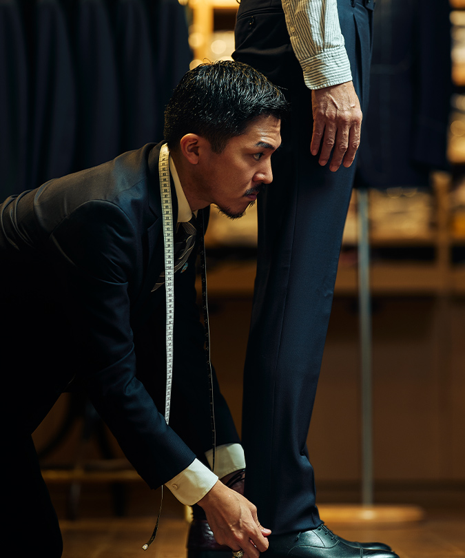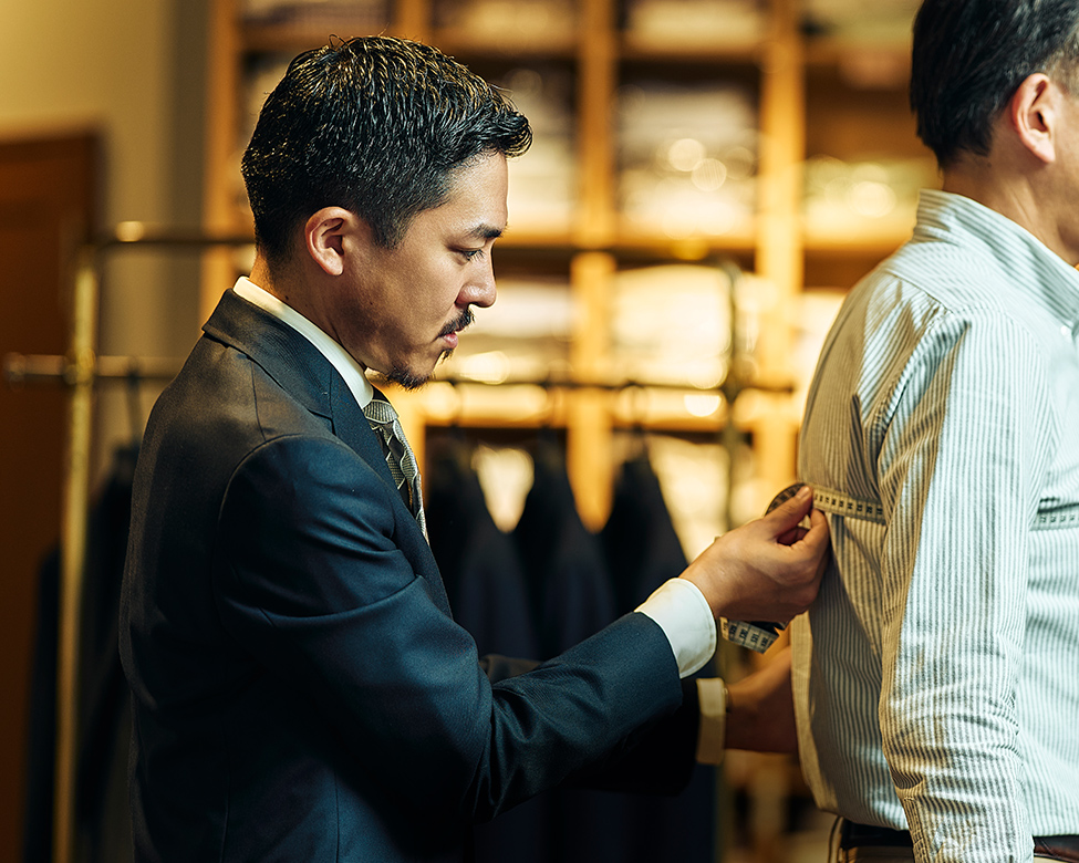約半年に及ぶ採寸技術研修を経た、オーダーの専門スタッフが承ります。